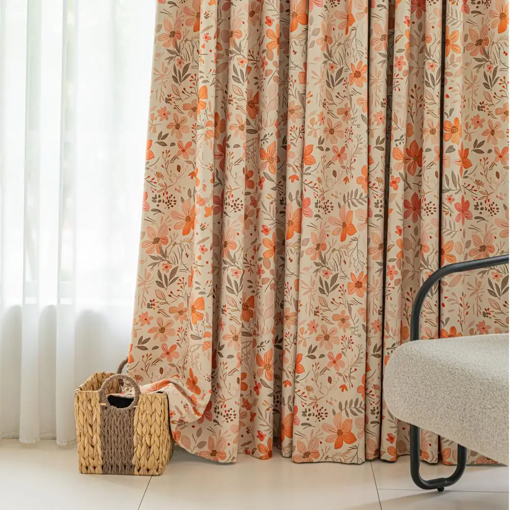 Pour un rendu haut de gamme, associez ce rideau floral moderne à des murs clairs et un mobilier aux lignes simples : le motif devient alors un point focal maîtrisé. Dans une chambre, privilégiez des textiles unis (linge de lit, coussins) pour équilibrer l’ensemble. Dans un salon, jouez les rappels subtils avec un vase, un tapis ou une œuvre murale aux tonalités proches. En environnement professionnel (boutique, café, bureau), il peut aussi servir à structurer visuellement une zone, tout en préservant l’intimité et le confort des clients.